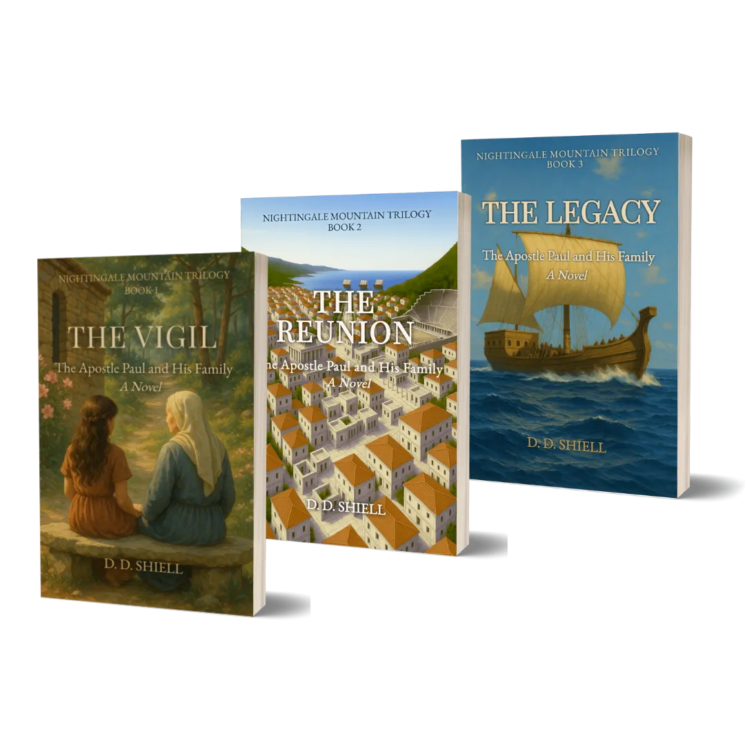 From the hills of Ephesus to the heart of Rome, the Nightingale Mountain Trilogy follows the Apostle Paul and his family through betrayal, reconciliation, and enduring faith. In The Vigil, Rachel’s quiet life unravels as secrets and persecution force her to confront the past. In The Reunion, estranged father and daughter wrestle with forgiveness and love. In The Legacy, a new generation carries the torch of faith in the face of Rome’s power. A sweeping saga of family, sacrifice, and the earliest followers of Jesus.